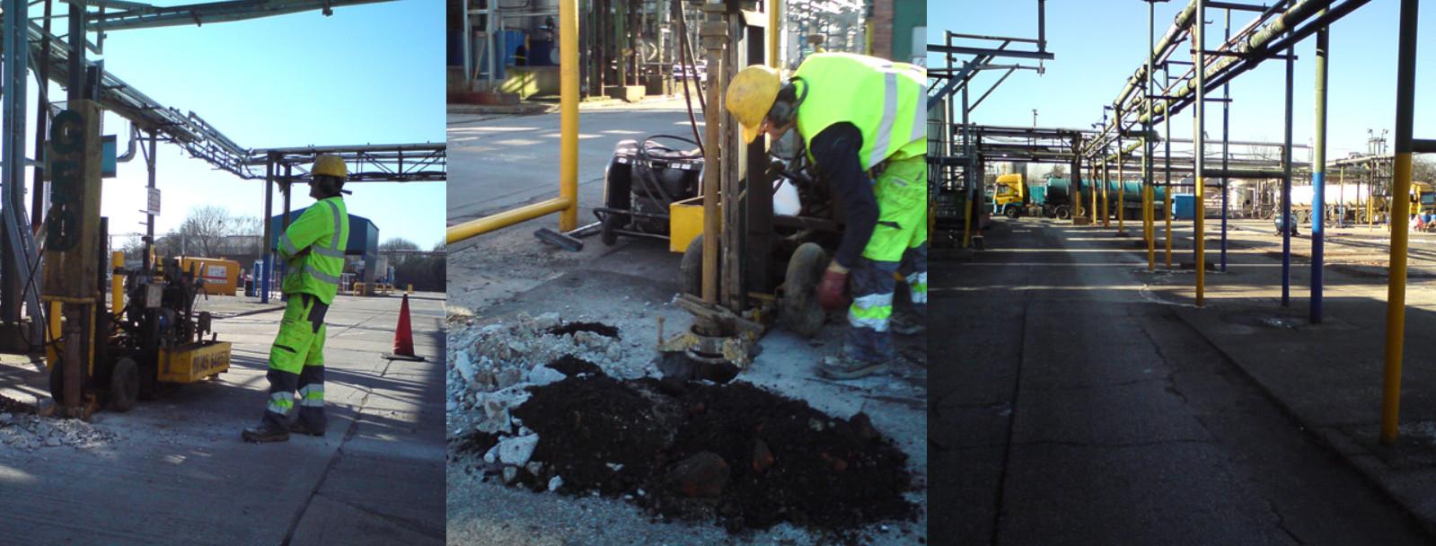 The scope of works has comprised a large number of dynamic sampling boreholes with groundwater and ground gas monitoring wells. In conjunction with the borehole investigation additional works were being completed to decommission silos and tanks on site, with the drainage network undergoing assessment and where necessary, cleaning.