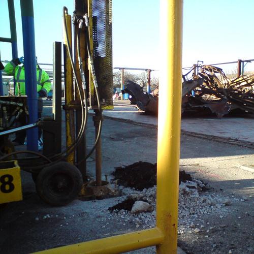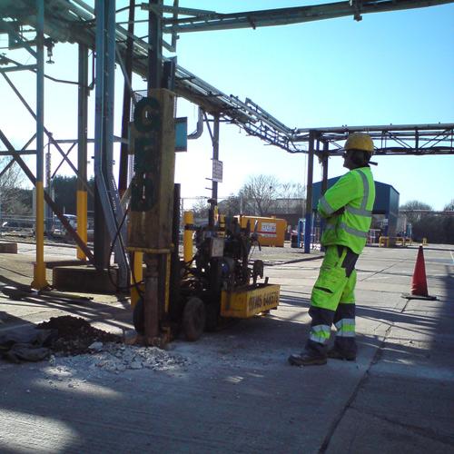 The scope of works has comprised a large number of dynamic sampling boreholes with groundwater and ground gas monitoring wells. In conjunction with the borehole investigation additional works were being completed to decommission silos and tanks on site, with the drainage network undergoing assessment and where necessary, cleaning.